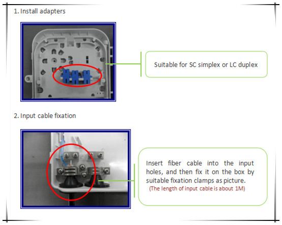 Fiber optic terminal box is a FTTH mini optic terminal box,It is used in the end termination of residential buildings andvillas, to fix and splice with Pigtails or connected fast connectors can be installed on the outside wall.